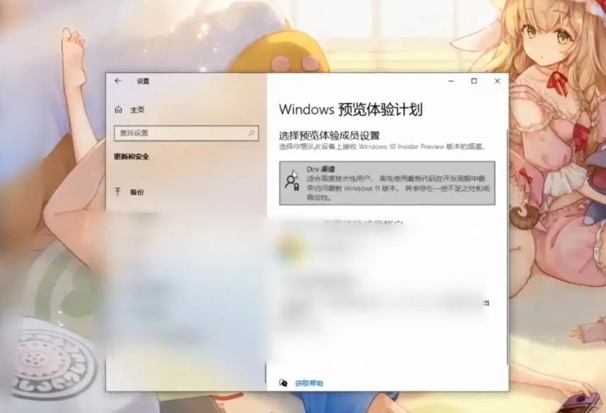 2、登錄windows預覽體驗成員帳戶后將渠道設置為Dev渠道,返回進入windows更新菜單。