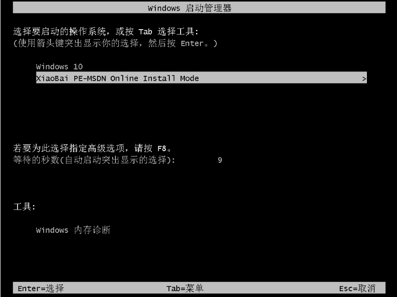 3、自動選擇xiaobai-pe系統進入。