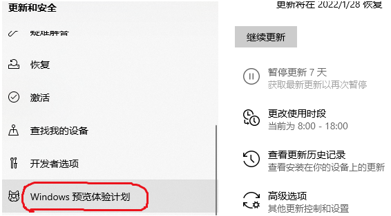 3、在左側下邊選擇“windows預覽體驗計劃”進入。