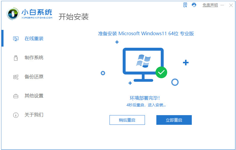 方法一:使用小白在線一鍵重裝系統win11(適合電腦能進系統的情況)