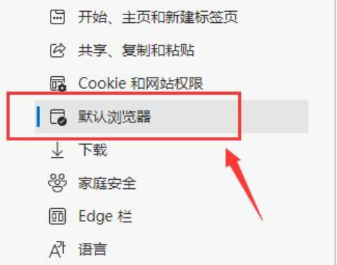 3、然后在左側邊欄中找到并進入“默認瀏覽器”。