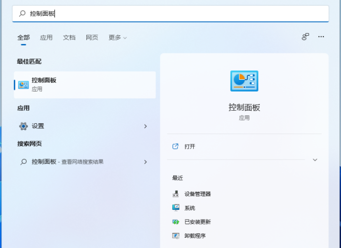 1、按 Win + S 組合鍵,或點擊任務欄上的搜索圖標,在打開的Windows 搜索,頂部搜索框輸入控制面板,然后點擊打開系統給出的最佳匹配控制面板應用;