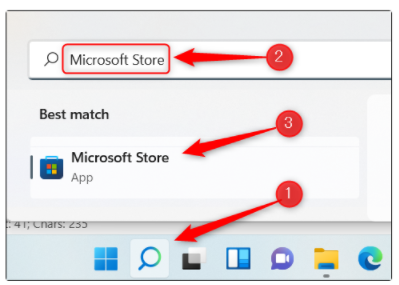 1、從win11的Microsoft Store應用商店下載這款軟件。單擊win11桌面底部的搜索圖標,輸入“Microsoft Store”打開。