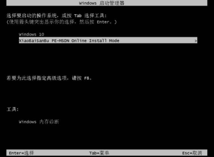 4、電腦此時將會進入啟動項選擇界面,選擇小白PE系統按回車鍵進入。