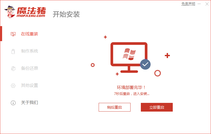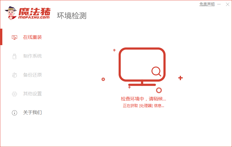 1、打開魔法豬一鍵重裝軟件(www.mofazhu.com)。