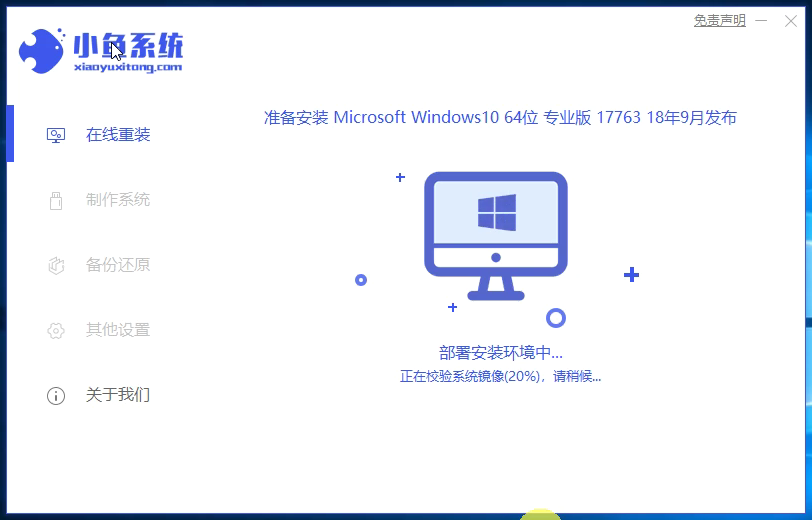 5.下圖可以看到小魚系統開始下載系統資源,一般看網速十幾分鐘完成下載,期間保證電腦不要斷網斷電哦。