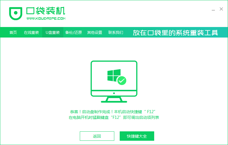 5、然后等待系統下載并成功制作U盤工具。然后拔出U盤并將其插入需要重新安裝系統的計算機。