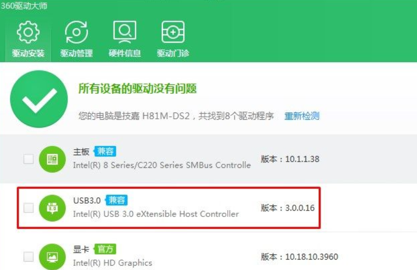 3.這時啟動到安全模式,USB鼠標鍵盤也是能用的,帶網絡的。這時我們更新一下USB驅動就可以了,建議使用360驅動大師或是驅動精靈。
