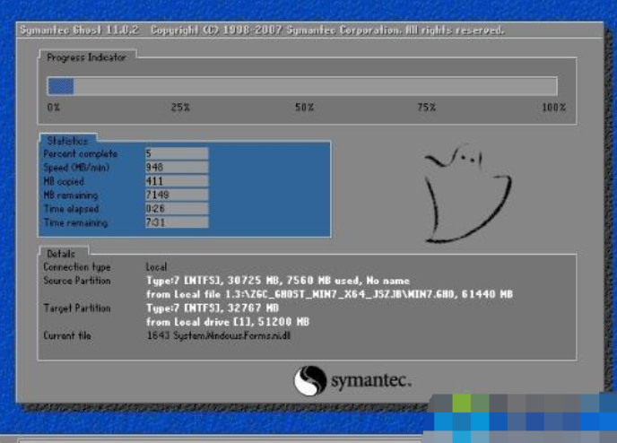 5、解壓完成后自動重啟,開始安裝ghost win7 64位旗艦版;