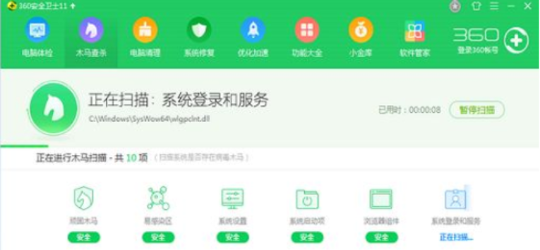 3.電腦進入系統后,哦我們呢使用360安全衛士進行病毒的查殺。