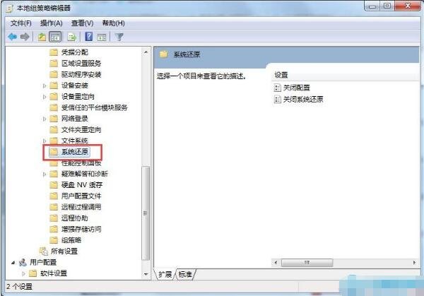 4、點擊“系統還原”,雙擊打開窗口的右側的“關閉系統還原”。