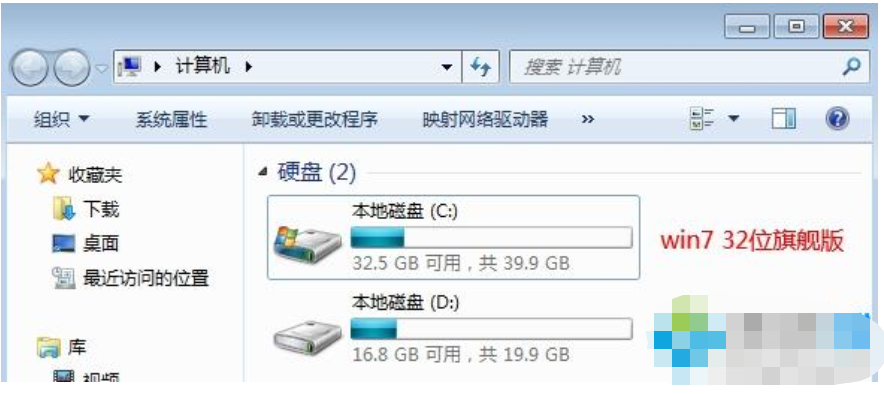 2、系統安裝之后,還需要更新系統補丁以及安裝驅動程序,日常系統操作會在系統盤產生緩存文件,因此,小編建議大家安裝win7 32位需30G以上的空間,win7 64位則至少40G的硬盤空間。