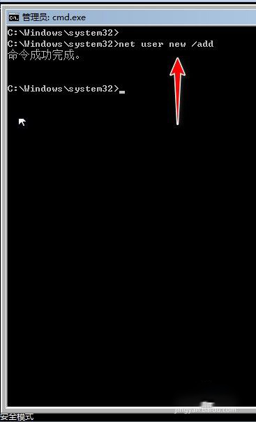 5、在命令提示行后輸入:net user new /add
