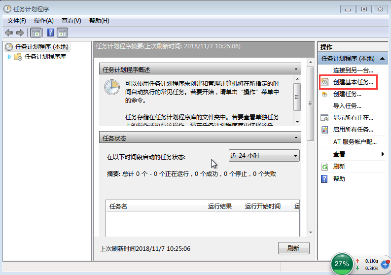 Step2:打開“任務計劃程序”窗口后,點擊“創建基本任務”