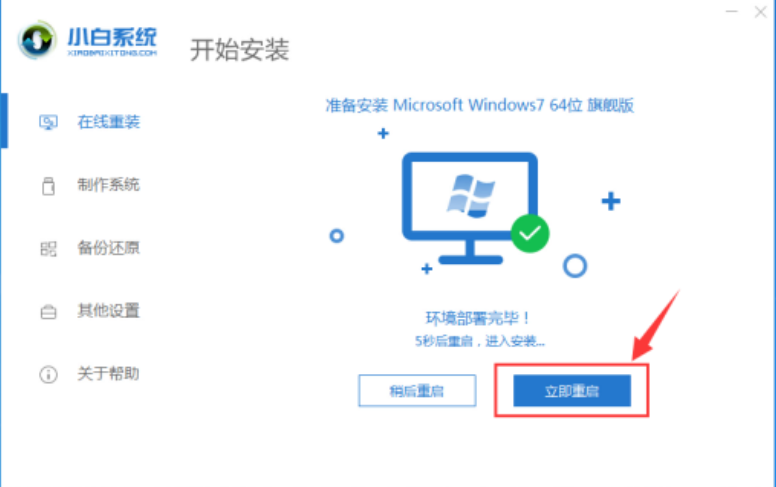 5.等待環境部署完成后自動重啟電腦,如果暫時不安裝,請點擊稍后重啟。