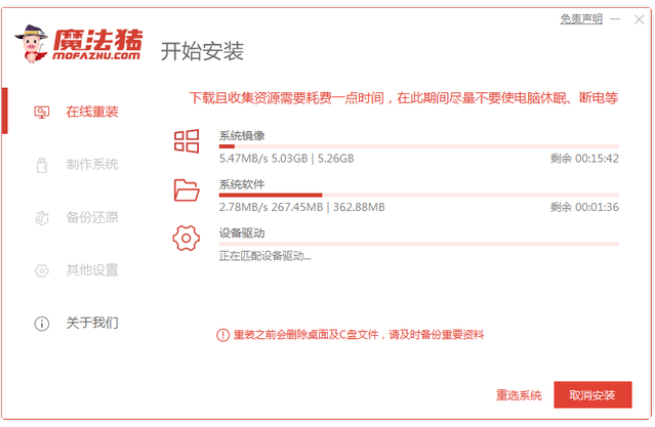 2、然后等待軟件開始自動下載win7系統文件和驅動等,在此期間盡量不要使電腦休眠斷電等。