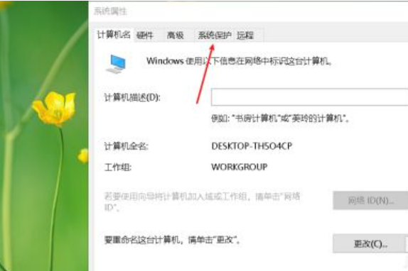 2、點擊系統保護,在屬性里面,點擊屬性保護進去。