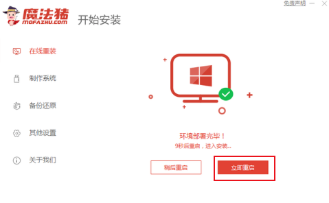 1. 在網上搜索下載魔法豬一鍵重裝系統軟件并打開,在在線重裝界面選擇win7系統后點擊安裝。