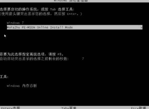 4. 在windows啟動界面中選擇mofazhu pe-msdn項進入pe系統。