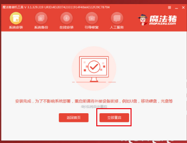 5. 等待魔法豬裝機工具自動安裝win7系統完成。