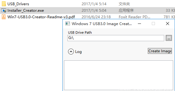 5、點擊Create Image開始往啟動U盤內添加USB的驅動程序。