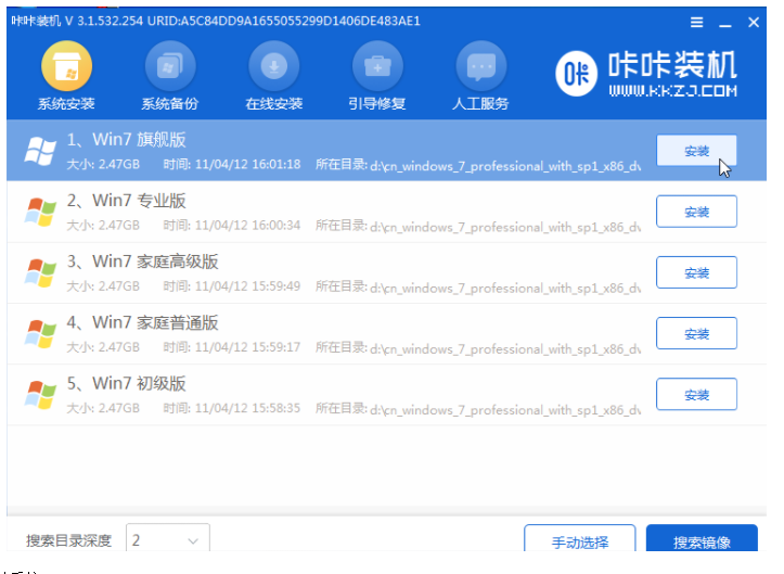 7、進入pe安裝系統界面,選擇一個我們需要安裝的系統。