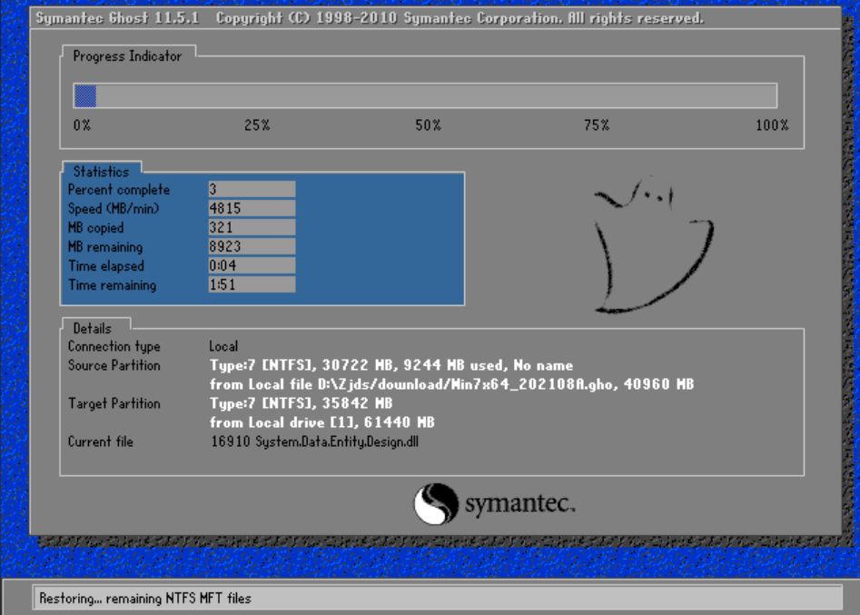 5、系統備份完成后,將會再次重啟,自動進入系統安裝界面,這時等待系統安裝完成就大功告成了!
