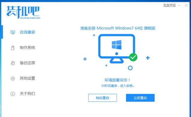 1、電腦安裝好裝機吧一鍵重裝系統軟件并打開,在這就可以下載安裝win7的64位系統