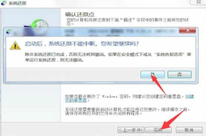 5、完成,最后在彈出的頁面中,選擇是,即可開始系統還原系統