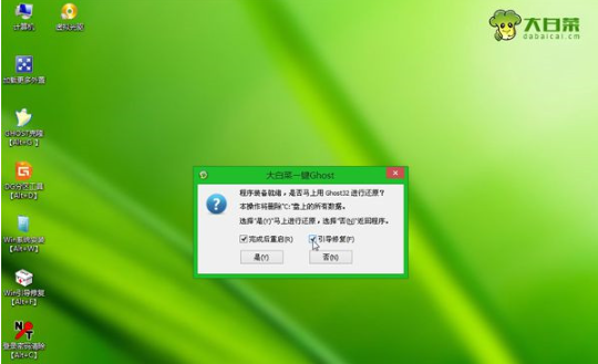 8、在彈出的提示框中勾選“完成后重啟”和“引導修復”,點擊是;