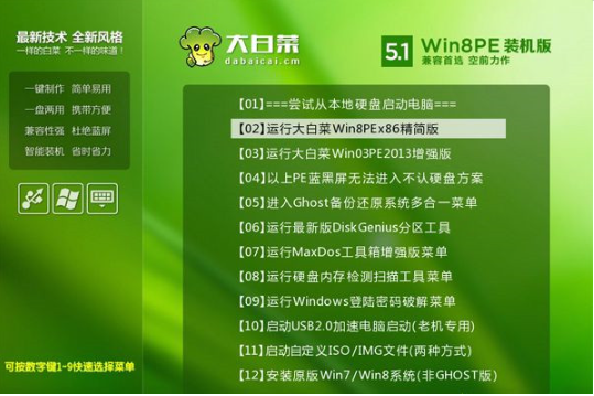 3、從啟動進入到菜單界面,利用方向鍵選擇【02】選項回車進入pe系統,不能進入的用戶選擇【03】舊版PE系統;