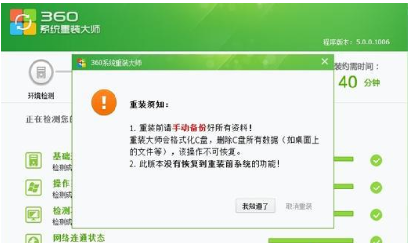 2、打開360重裝大師,點擊【重裝環境檢測】;
