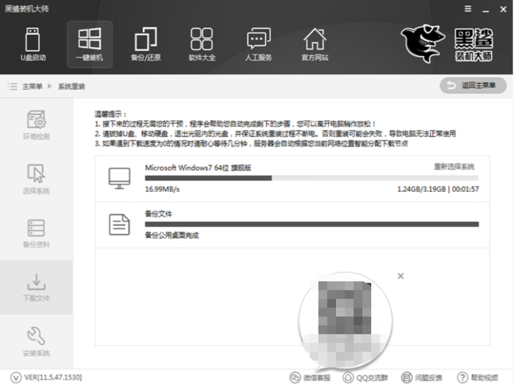 4、等待軟件自動下載系統和備份文件,等待系統自動安裝。