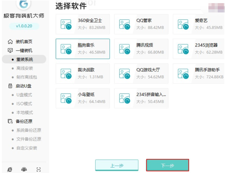 軟件版本:極客狗裝機大師軟件(原黑鯊)