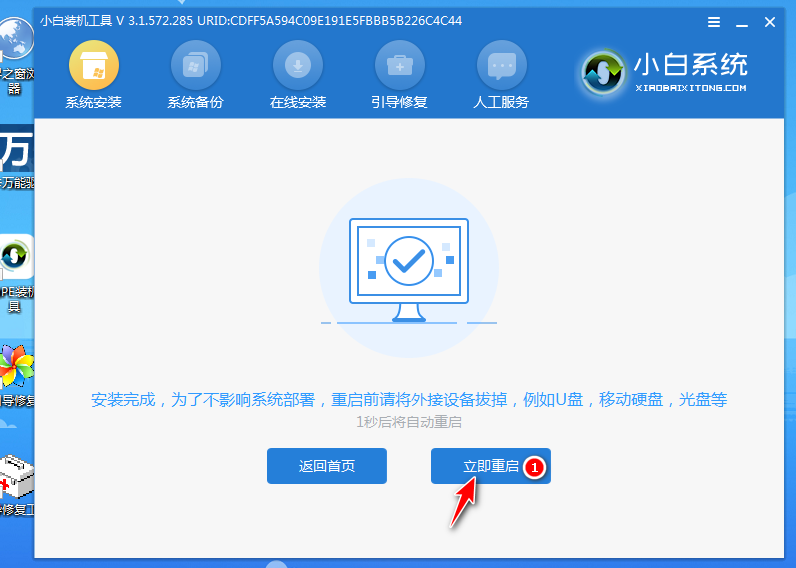 6、默認是將系統安裝到系統盤c盤,安裝完成后,立即重啟電腦。
