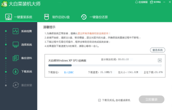 以上便是大白菜win7系統安裝教程,操作非常簡單,只需安裝軟件提示一鍵裝機即可。