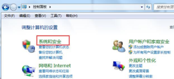 3.接著在控制面板的頁面,我們找到“系統與安全”選項。