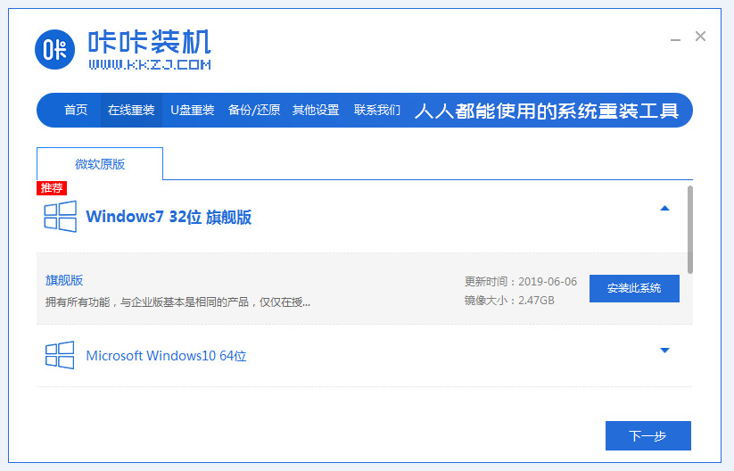 2、在線重裝頁面中,選擇此次要安裝的win7系統版本,點擊安裝此系統?!?/p>
