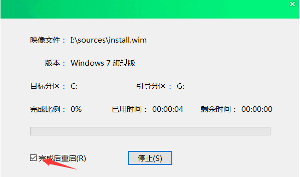 步驟五:勾選安裝頁面的左下角的【完成后重啟】,那么在安裝完成會自動開始重啟。