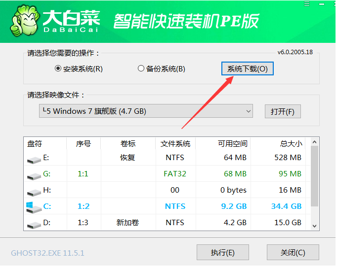 步驟二:打開大白菜一鍵裝機工具,選擇【安裝系統】。