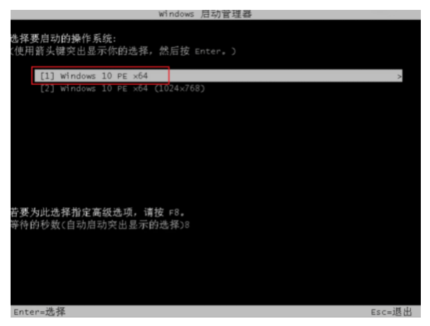 6、進入啟動界面后,選擇第一項進入pe系統。