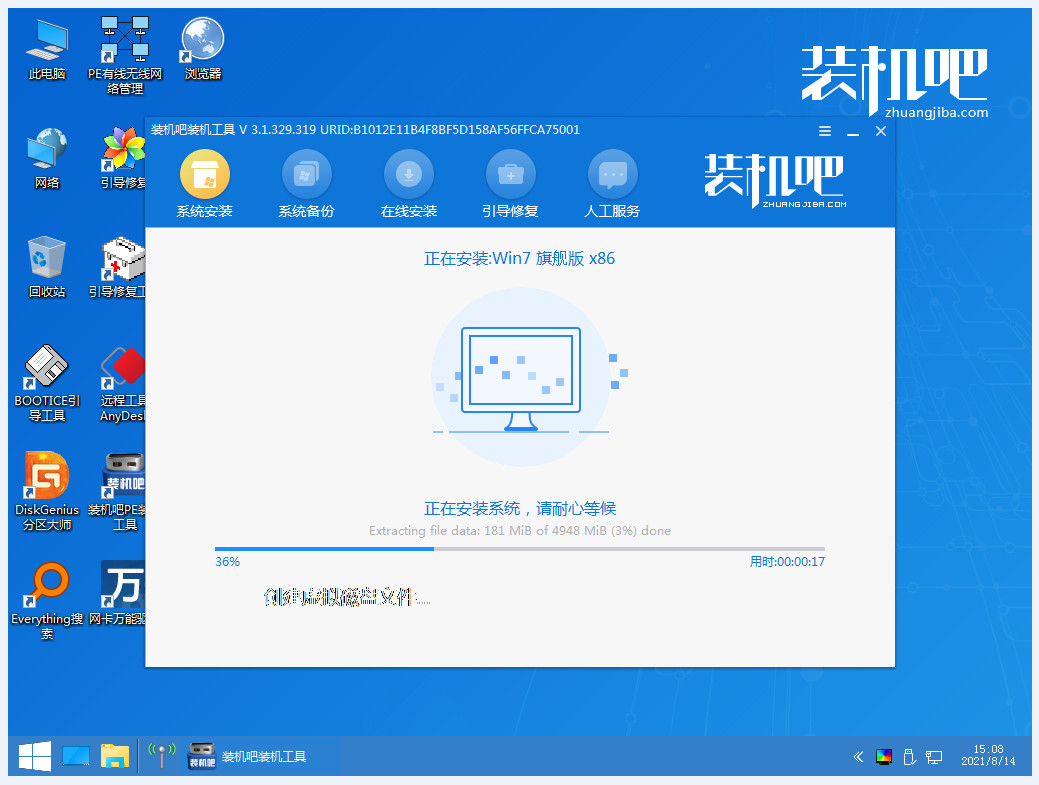 5、進入pe系統后,軟件會自動進行系統安裝。