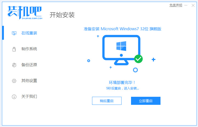 1、在官網上下載并安裝“裝機吧系統裝機大師”軟件,隨后打開軟件,點擊進入在線重裝界面,選擇此次要安裝win7系統,點擊下一步。