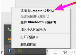 2、右擊鼠標藍牙,出現菜單,添加設備就是我們要添加一個或幾個藍牙設備,比如藍牙鼠標就是一個設備,顯示藍牙設備,就是顯示當前和電腦配對的藍牙設備,加入個人局域網。