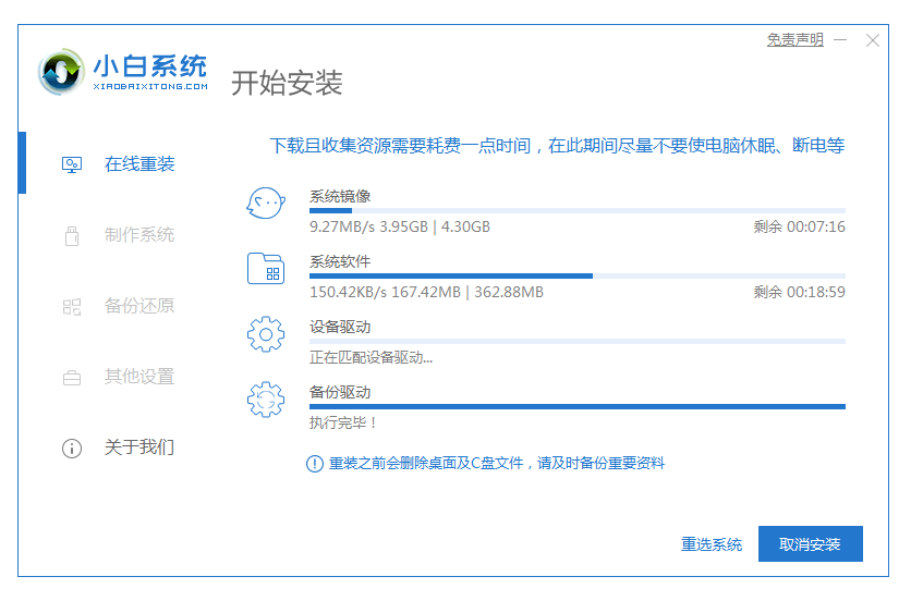 6、進入pe系統后,小白裝機工具會自動開始安裝win7旗艦版系統,耐心等待。