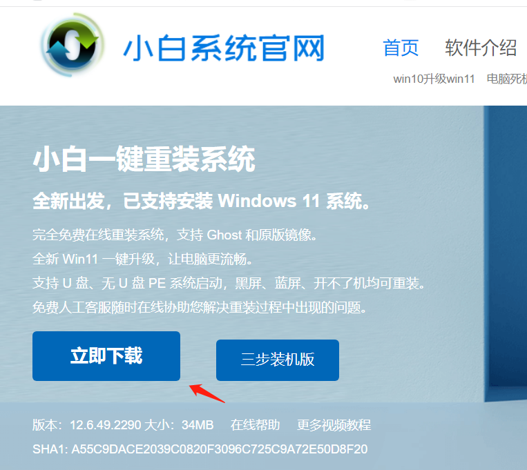 1、電腦上直接上小白官網下載小白一鍵重裝系統軟件。