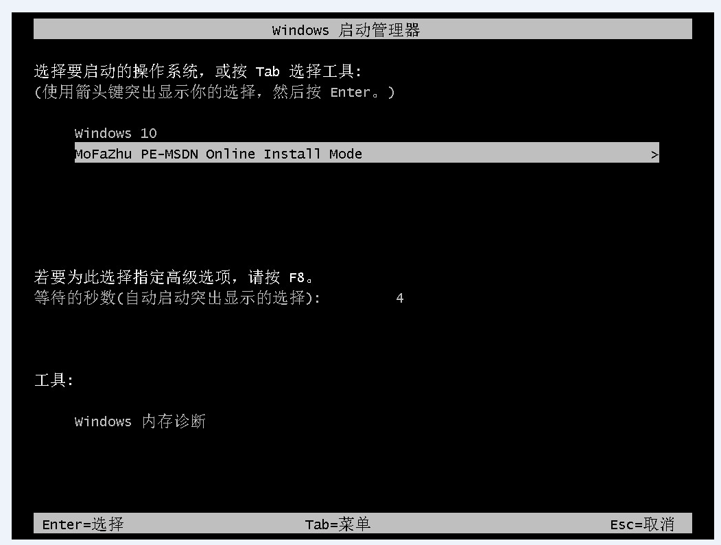 4、進入啟動頁面后選擇第二項進入pe系統。