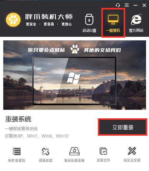 3.在一鍵裝機下點擊立即重裝按鈕。