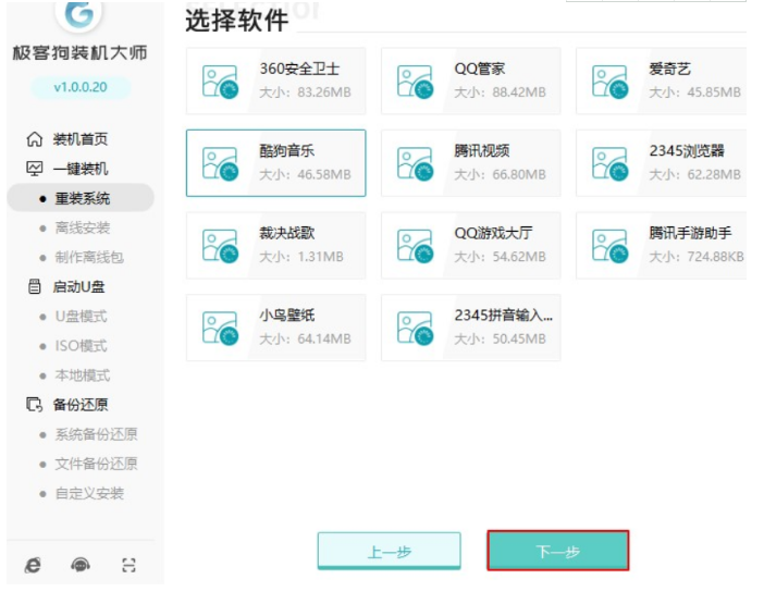軟件版本:極客狗裝機大師軟件(原黑鯊)