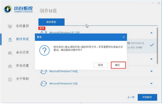 步驟三:此時電腦屏幕會彈出格式化U盤操作,我們在確定保存好重要數據以后,單擊“確認”,等待U盤制作完成以后,重啟電腦即可。